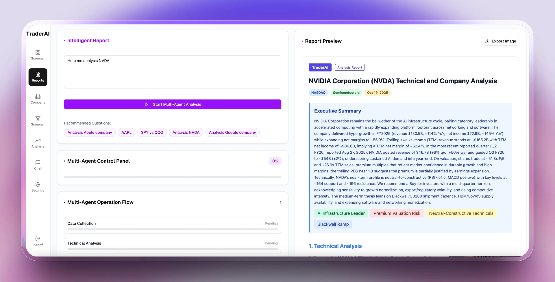 Leverage advanced AI technology to deeply analyze stock performance, providing real-time market insights, technical indicator analysis, and risk assessment. Help investment experts quickly identify investment opportunities and develop precise investment strategies.